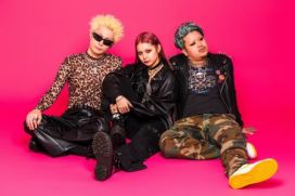 L→R SEIYA(Ba)、 Sakura(Vo)、SHO(Dr)